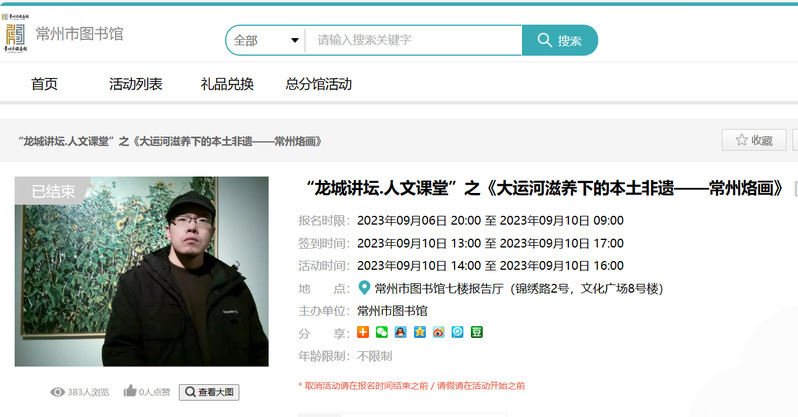 9月10日14点,我校与常州市图书馆联合举办的非物质文化遗产传承与创新系列大讲堂,第一次讲座“大运河文化滋养下的本土非遗——常州烙画”如约开讲。