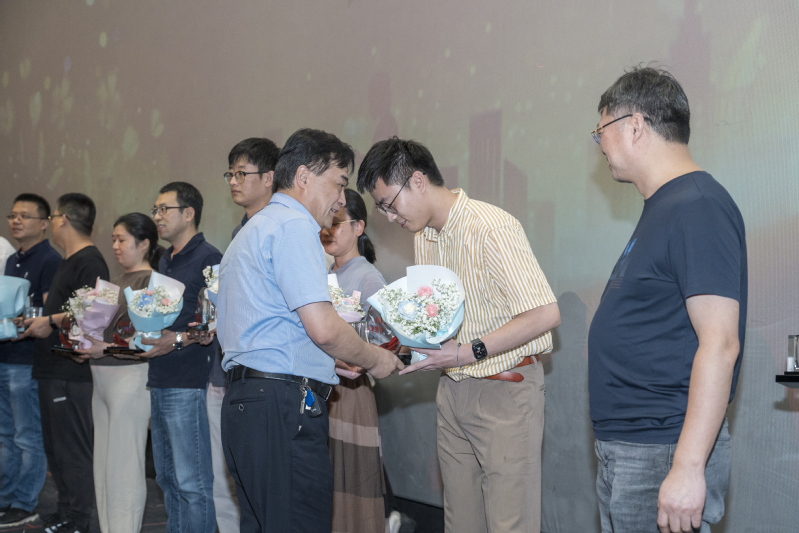 麻丽娟宣布首届“智能控制学院十大先锋人物”获选名单,并逐一介绍事迹。杨劲松为涂艳群、芮政、蒋金伟、刘进福、赵娜娜、冷雪峰、陈曦、张素贞、潘振宁、顾六平十位先锋教师颁发奖杯,学生代表们向获评教师们献花。麻丽娟号召智控教师不断超越自我,以十大先锋人物评选为契机,精研教学能力,精进专业水平。