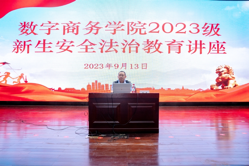 为切实增强2023级新生安全知识和防范意识,保障学生人身财产安全,维护校园稳定,助力新生顺利平安地度过大学生活,9月13日下午,数字商务学院邀请科教城派出所民警徐于为新生开展安全法治教育讲座。学院党总支副书记吴佳伟、23级班主任以及全体新生参加会议。