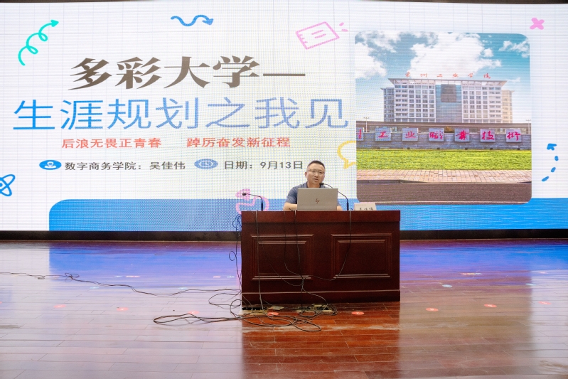 为帮助大一新生了解大学生活的变化,尽快适应大学生活,顺利完成角色转变,明确未来发展方向,9月13日晚,数字商务学院开展了“多彩大学——生涯规划之我见”新生主题讲座。学院党总支副书记吴佳伟主讲、23级班主任以及全体新生参加会议。