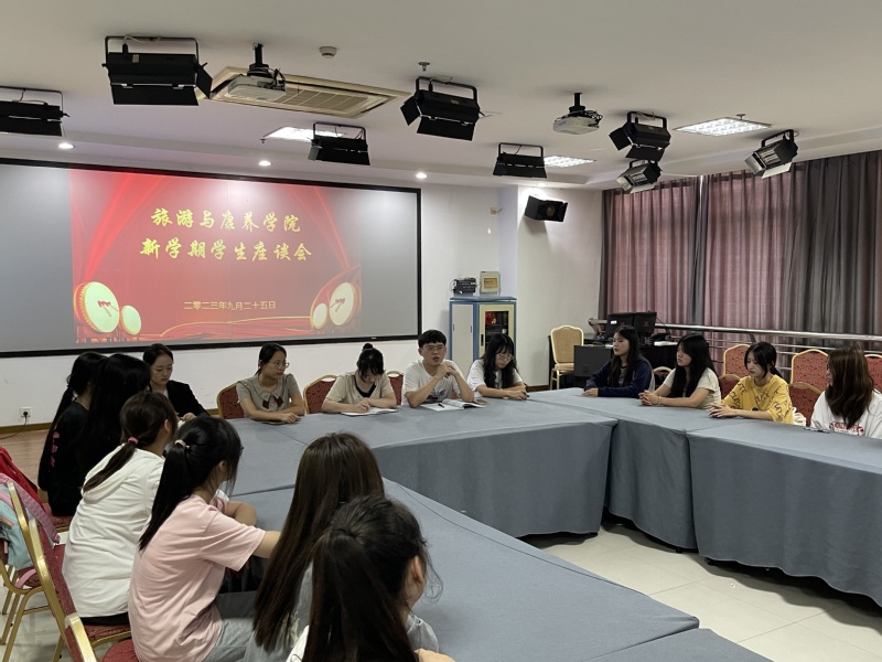 新学期伊始,为及时、准确了解我院学生的思想动态与实际所需,立足“为学生办实事”的根本关键点,充分发挥“一站式”学生社区的育人功能,丰富“有我+”党建品牌内涵。9月25日下午,旅游与康养学院组织召开新学期学生座谈会,学院相关辅导员、教务秘书、专任教师代表以及22、23级学生代表参会。