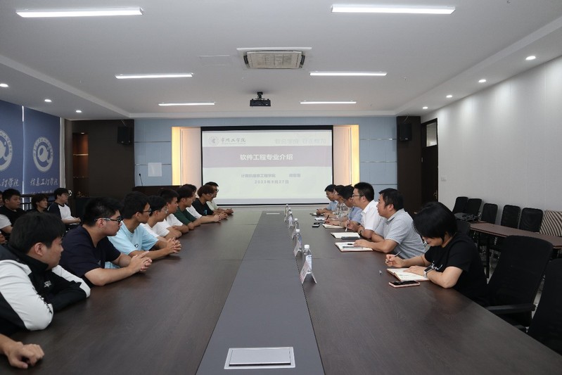 9月27日下午,常州工学院计算机信息工程学院院长胡智喜一行3人来我校参加信息工程学院软件技术专业“3+2”高职本科分段培养项目新生见面会。学校教务处副处长丁华峰、信息工程学院副院长袁凯烽陪同参加了此次见面会,与来自23软件技术531班的38名新生亲切交流。