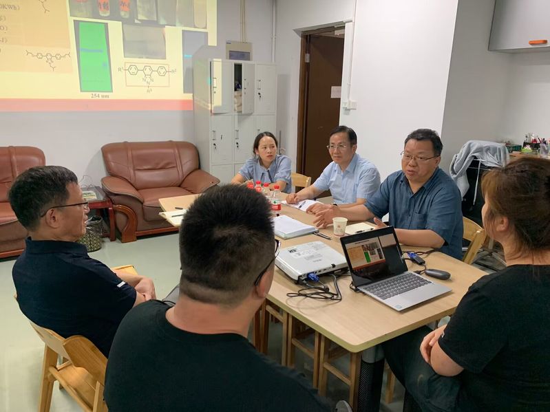 滕业方一行首先参观了孙教授课题组实验室。随后双方进行了座谈。在座谈中,孙教授简要回顾了课题组早期与企业在药物结构及杂质鉴定、手性药物研发等方面的合作和取得的成果,详细介绍了课题组助力新能源之都建设,与新能源知名企业在改性高分子薄膜产品化研究方面取得的新进展。