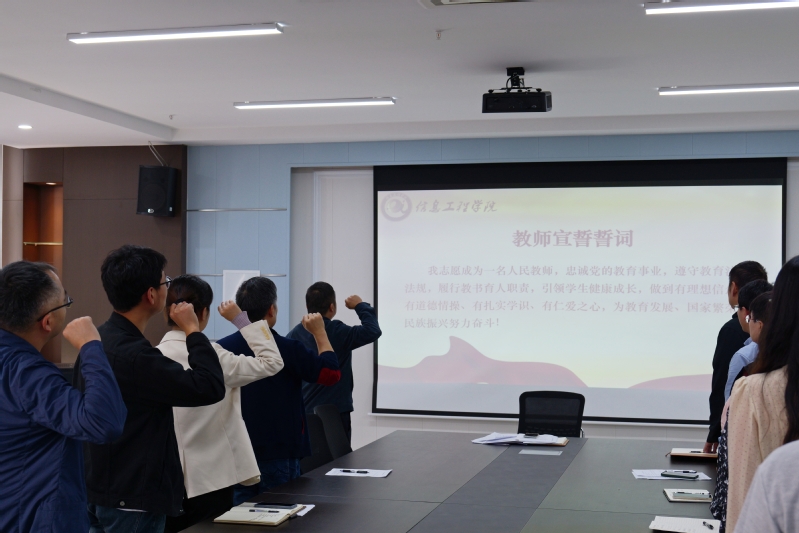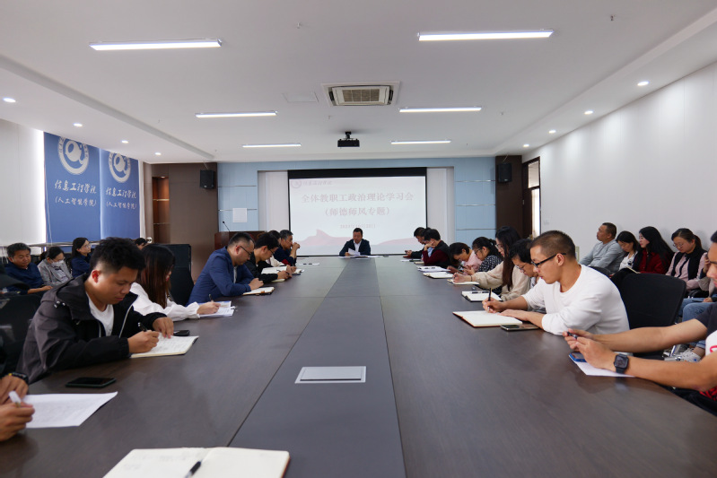 为深刻领会习近平总书记关于教育的重要论述,增强教育事业的政治自觉、思想自觉和行动自觉,提升教师师德修养,严明作风纪律建设,铸造具备高尚师德师风的教师队伍,10月25日,信息工程学院开展“学思想·扬师德·铸师魂”师德师风教育系列活动,本次活动由信息工程学院党总支副书记、副院长袁凯烽主持,全体教职工参加活动。