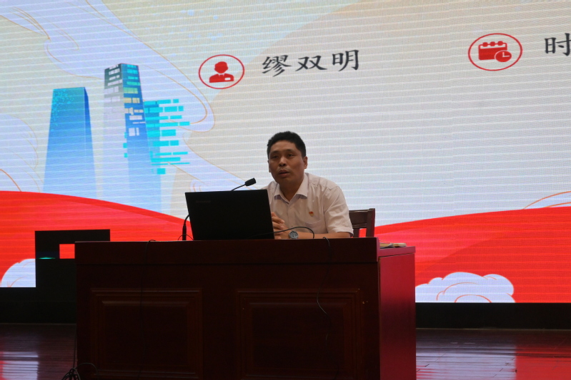 缪双明主要聚焦于“中国共青团简介”,习近平总书记对新时代青年的“六点要求”,“新时代如何做好青年工作”,“青年不忘初心跟党走,奋勇建功新时代”四个部分为大家进行讲解。在此期间,缪双明指出,身为新时代中国青年,我们必须牢记习近平总书记的嘱托,要坚定不移听党话、跟党走,立志做有理想、敢担当、能吃苦、肯奋斗的新时代好青年。缪双明还结合实际情况,就如何提高团员的综合素质、发挥团员的积极作用,以及加强团组织建设等方面进行了详细阐述。随后,他邀请大家分享自己的入团动机,多位同学提出要将个人理想融入社会,增强思想意识。同时,他鼓励团课学员们能够努力学习专业知识、积极参加志愿服务,不断提高自身素质和能力水平,让青春在全面建设社会主义现代化国家的火热实践中绽放绚丽之花。