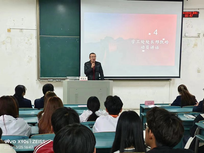 经过前期的招募和筛选,本次共有75名新成员加入自律会。各部门部长在大会现场给每一名新成员佩戴工作牌,并要求大家爱护工作牌,珍惜学生干部的荣誉,向全校师生展示社区学生干部的良好精神面貌。邢凯岭在总结讲话中肯定了自律会在“一站式”学生社区建设和运营中的积极作用,感谢所有学生干部的辛勤付出。他表示,学校正在紧锣密鼓地进行社区建设,确保学生工作队伍下沉到社区一线,希望大家群策群力,共同为社区建设添砖加瓦。