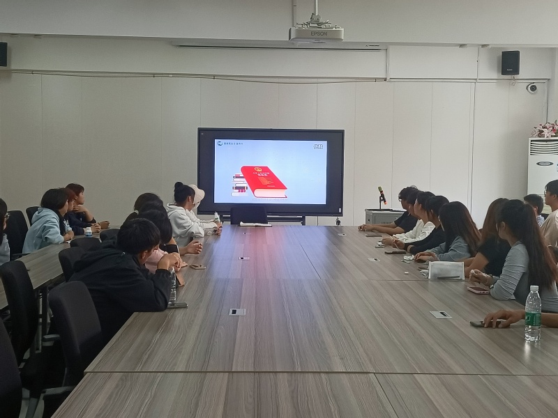 开展宪法知识宣讲。辅导员老师通过课堂讲授和观看宪法宣传视频的方式向同学们详细阐述了为何高校学生要学习宪法、树立法治意识、遵守法律法规,梳理了我国宪法的发展历程,同时通过部分案例讲解了高校学生学宪法、懂宪法的重要性。