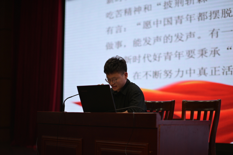 陈雷雷主要围绕“中国共产主义青年团简介”“团的3个发展阶段”“弘扬五四精神”三个方面,引导入团积极分子们与历史使命、时代使命同频共振——争做好学上进的榜样,做到刻苦耐劳的精神与进取创新的精神的统一、独立自主的精神与无私奉献精神的统一。紧接着,陈雷雷用一段视频《五四记忆》,向同学们讲述了共青团从五四运动到当今的巨大飞跃,激发了同学们的爱国主义热情。在本次团课中,陈雷雷引用了习近平总书记青年时期在延安插队的经历,指明了共青团员要在成长和奋斗中收获成长和喜悦,在困难和压力下不断发展自我,积极参与社会实践。陈雷雷呼吁同学们作为入团积极分子要树立理想,坚定信念;勉励团课学员们积极参与社会实践活动,努力践行志愿者精神、利用课余时间积极学习,参观红色景点和革命圣地。