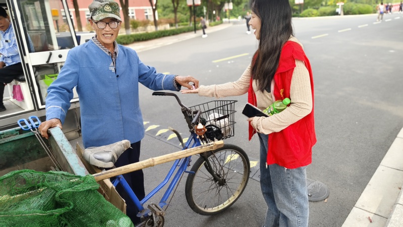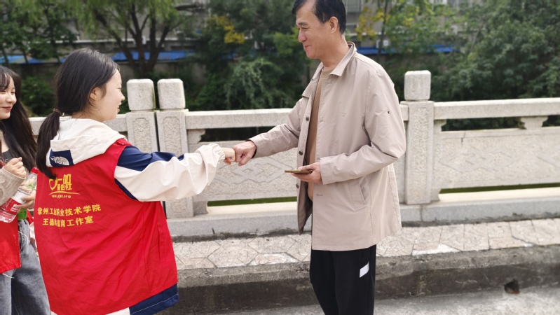 活动现场,在心理辅导员王姝娴的带领下,同学们两两一组,手中握着印有“材料工程学院心理部”字样的糖果和写着暖心话语的字条,在学校里分别与同学、保安大爷、宿管阿姨、食堂阿姨等进行碰拳,并且在碰拳的同时为他们送上祝福。同学们都积极主动地参与到活动中来,与心理部的同学们进行互动与交流。从最开始的茫然,到后来积极的配合碰拳,再到收到糖果的惊喜,同学们的脸上都洋溢着开心的笑容,纷纷表示很惊喜,觉得心中暖暖的,充分展现了对彼此的信任和对陌生人的友善。