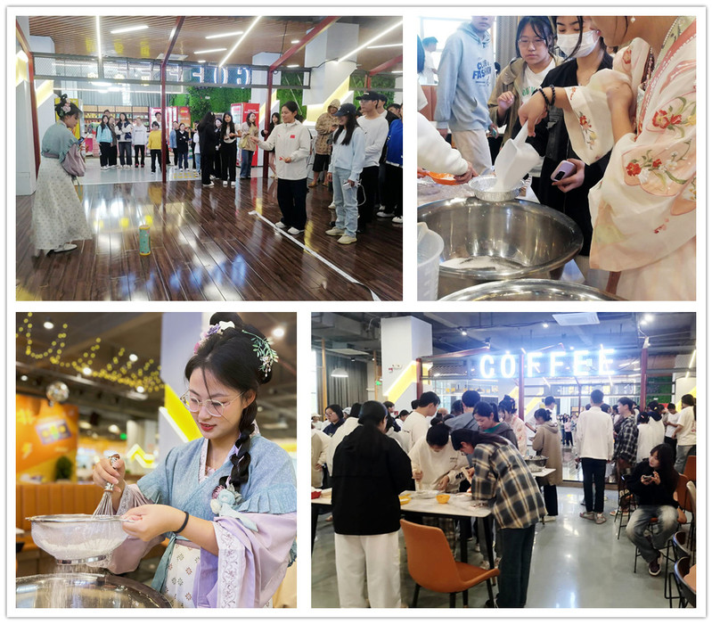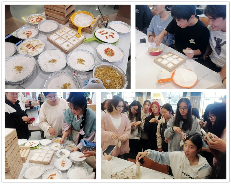 在活动中,汉服社的社员们身着华丽的汉服,一边向同学们传播汉服文化和重阳节文化,一边引导和协助同学们积极融入三个活动环节。第一个环节是制作茱萸香囊,社团提前准备了50个香囊材料包供同学们制作。茱萸雅号“辟邪翁”,在重阳节佩戴茱萸香囊有避难消灾、对亲朋好友怀念之意。第二个环节是制作重阳糕,“糕点”与“高点”谐音,吃下重阳糕寓意节节高升,也代表着晚辈对长辈的美好祝愿。社员们与餐厅合作,准备了充足的制作原料和工具,并吸引了众多同学的积极参与。活动一开始,社长为大家详细解说了重阳糕的制作方法,然后社员们分组带领大家动手制作,使用糯米粉、各种干果等原材料,亲手制作出美味的重阳糕,制作好后上锅蒸制。同时,蒸制重阳糕的过程也伴随着进行第三个环节——传统的“投壶”游戏。投壶作为射礼的变种,承载着中国传统文化中仁义、中庸之道的内涵。同学们佩戴着茱萸香囊,在投壶游戏的同时,品味着那口感软糯、香甜可口的重阳糕,深刻领略到传统游戏的寓教于乐之意,体验到传统手工和美食制作的乐趣。