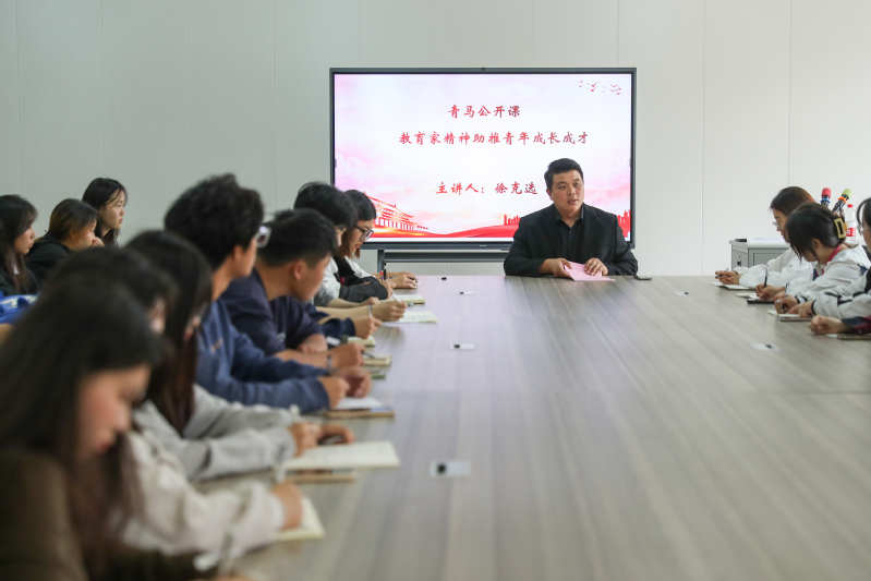 9月9日,习近平总书记致信全国优秀教师代表,阐释了教育家精神的深刻内涵,提出了大力弘扬教育家精神的殷切希望。为了深入学习践行教育家精神,10月29日晚,数字商务学院团委举办“教育家精神助推青年成长成才”专题青马公开课,学院团委书记徐克选做专题授课,全体团学干部参加活动。