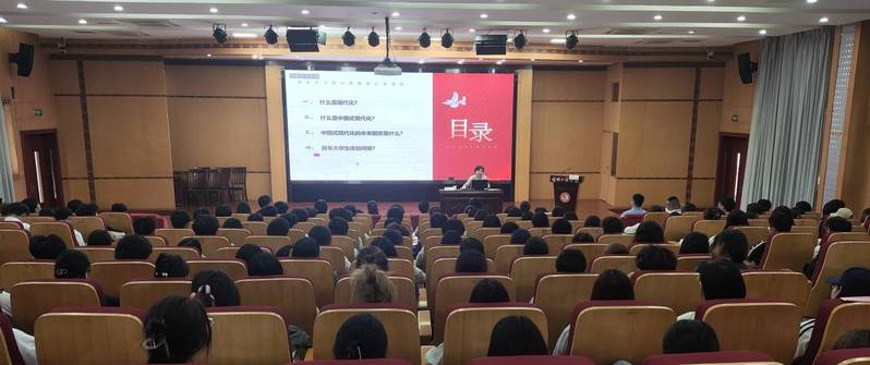 蒋新萍围绕社会主义核心价值观之富强篇,以《以青春之力托举中国式现代化》为主题,从什么是现代化、什么是中国式现代化、中国式现代化的未来图景是什么,以及新时代青年大学生如何助力中国式现代化进程等四个方面,以丰富的案例、详实的数据,讲解了中国式现代化,用通俗、质朴的语言让同学们深刻理解现代化是由传统社会向现代社会全方位转变的过程。整个讲座既有理论高度、又有现实维度,在面向同学们讲解如何助力中国式现代化进程,还赋予了感情的温度。她鼓励青年学子以小我融入大我,牢记初心使命,坚定理想信念,传承奋斗担当,勇做时代前列的奋进者、开拓者、奉献者,用青春之力托举中国式现代化,用青春和汗水写下属于无愧于时代的人生华章,让青春在全面建设社会主义现代化国家的火热实践中绽放绚丽之花。同学们纷纷表示,本次讲座受益匪浅,进一步感受到中国共产党的伟大,深刻认识到中国特色社会主义制度的显著优越性,在今后的学习生活中努力学习专业文化知识,为中国式现代化奉献自己的青春之力。