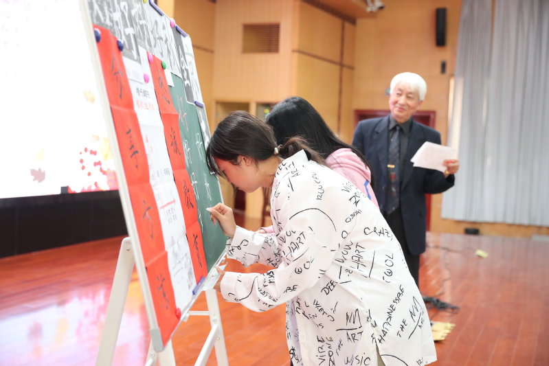 王春方老师从教于70年代,在数学教学中展现出了出色的书法功底。随着学校教学资源调整的需要,他承担了十五个班级的书法教学任务。为了讲好书法课,他开始了长达十余年的实践和探索,并从数学的坐标中找到了书法创作的灵感,独创了“楷书结构模拟坐标法”,使得学生在书法练习中化繁为简,深入简出,易懂好学。讲座中,王老师用生动形象的比喻,帮助学生轻松理解书法中的复杂技巧和概念,强调了书法艺术必须追求“神”“形”兼备,同时列举了“欧”“颜”“柳”“赵”四大楷体的共同点。王老师还邀请了20位学生现场练写,以激发他们对书法的兴趣。最后,他引用《周易》中“天行健,君子以自强不息;地势坤,君子以厚德载物”两句话,激励青年大学生们要为写好中国字、做好中国人而不断努力。讲座结束后,王老师还向学校赠送了多套最新出版的《硬笔书法教程》。