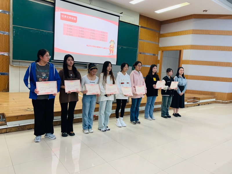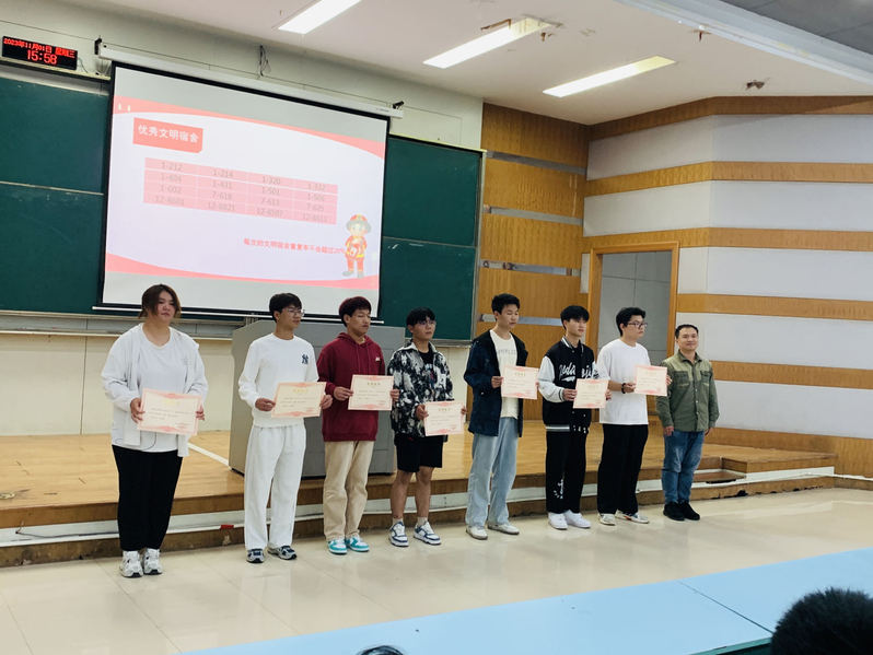 与会老师分别与同学们交流了公寓舆情管理、公寓人文环境维护、舍长个人的工作定位、公寓日常管理制度等几个方面,一方面让同学们深刻认识到作为一名当代大学生必须提高政治站位,不信谣、不传谣,守住基本底线,为创建和谐、稳定的公寓环境助力;另一方面结合实际案例,让同学们深刻了解到使用违禁电器带来的安全隐患,提醒广大同学从自身做起,守规守矩,拒绝违禁电器,舒心你我他,营造平安、舒适的生活学习环境。王润滋老师和谭家皓老师分别为十月的优秀文明宿舍颁发了证书及奖品。,12-8817宿舍长臧博春表示:“优秀文明宿舍是我们学习的榜样,在下一阶段中,我们也将继续努力,多向目前的优秀文明宿舍学习,争优争先,争评11月的优秀文明宿舍。”