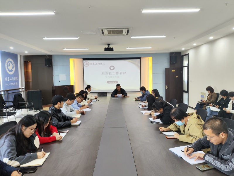 为了营造良好的学习氛围,提高学生学习的积极性和主动性,推进学院学风建设,11月7日,信息工程学院召开学风建设专题研讨会。会议由信息工程学院党总支副书记赵云和副院长武栋主持,全体班主任和辅导员参加。
