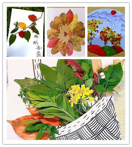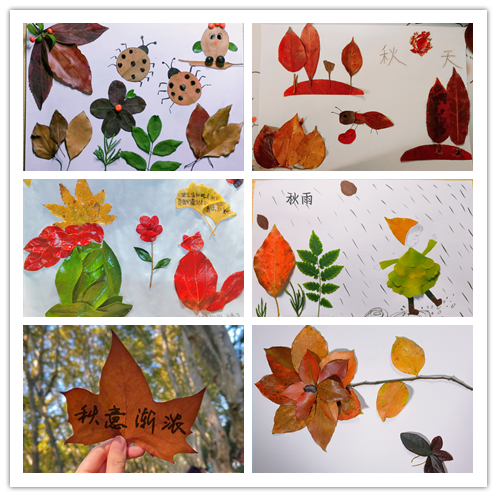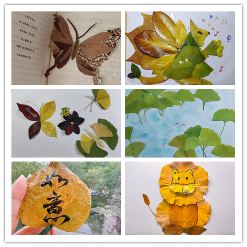 此次活动分为两个环节,树叶贴画和树叶祝福。活动一经发布就得到了同学们的积极响应,共计收到作品八十余幅。同学们走进自然,寻找收集不同的落叶,并以多彩的树叶为材料,有的通过裁剪、粘贴、添画、装饰等方法,组合成了一幅幅精美的树叶贴画;有的以笔为念,采用不同的字体和彩笔,将自己的祝福书写在落叶上。