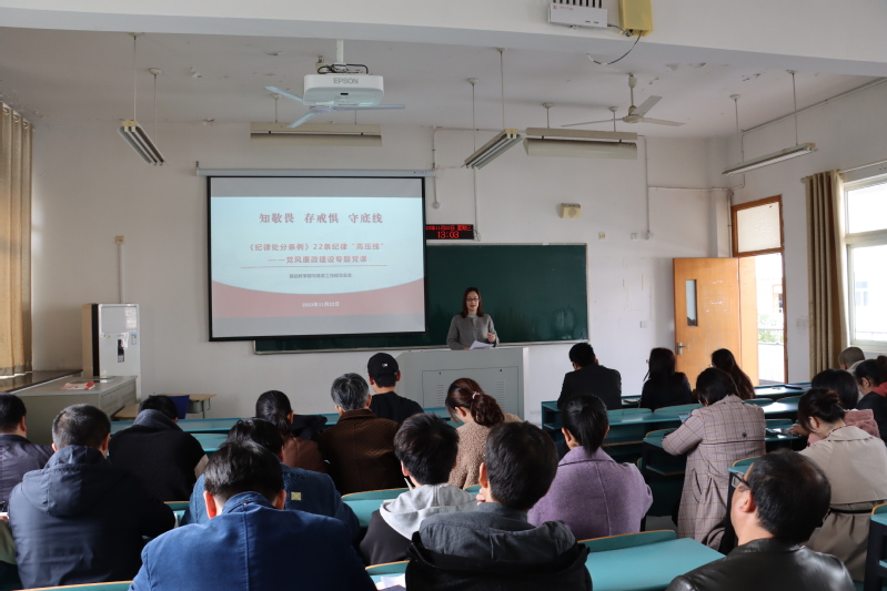 随后,江小丹以《中国共产党纪律处分条例》22条纪律“高压线”为主题,讲授了党风廉政建设专题党课,重点讲解了22条纪律“高压线”,如“重大原则问题不同中央保持一致”“改变公务行程借机旅游”“对配偶、子女及其配偶失管失教”等,并指出了高校违纪问题的重要领域与关键环节。江小丹指出,要深刻理解全面从严治党的内涵和意义,清醒认识当前党风廉政建设和反腐败斗争的严峻复杂形势,坚持严的主基调不动摇,坚持发扬钉钉子精神加强作风建设。一是要深刻领悟习近平总书记关于全面从严治党、党风廉政建设和反腐败斗争的重要论述,不断增强全面从严治党的政治自觉、思想自觉和行动自觉。二是要认真学习和贯彻落实部党委关于党风廉政建设的要求,不断强化纪律意识和规矩意识。党员干部要做到知敬畏、存戒惧、守底线,把好家庭关、权力关、监督关。全体教职工要从警示案例中汲取深刻教训、筑牢理想信念根基,做到慎言、慎微、慎独、慎友,三是要结合工作实际,将各项廉政措施和规则落到实处、执行到位。班子成员要履行好“一岗双责”,自觉维护风清气正的校园政治生态。(审核:江小丹、须嘉君、杨曌)