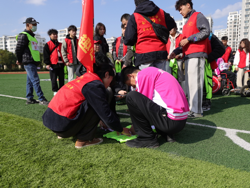 为扎实开展学习贯彻习近平新时代中国特色社会主义思想主题教育,宣传弘扬“奉献、友爱、互助、进步”的志愿服务精神,倡导扶残助残的良好风尚,应武进心家园公益助残服务中心的邀请,11月25日,艺术创意学院团委组织大学生星火青年志愿者们协助服务武进区第七届残障人趣味运动会举办,为残障人趣味运动会提供全程志愿服务。