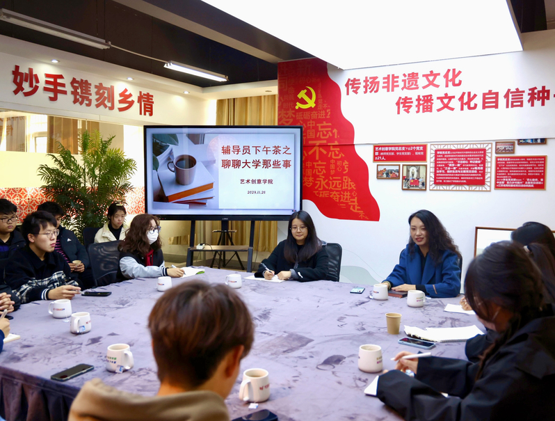 为了解2023级新生入学以来的真实感受,帮助同学们更好地适应大学生活,11月28日,艺术创意学院开展“聊聊大学那些事”辅导员下午茶活动。