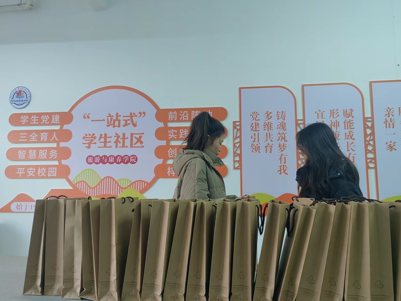 “温暖冬日”行动。旅游与康养学院结合学生专业特点和实际需求,在充分调研、了解学生实际的基础上,为残疾、孤儿或事实无人抚养等家庭经济困难学生购置多种类型、不同款式和颜色的保暖内衣,满足学生多样化的需求,为家庭经济困难学生送去温暖。发放过程充分保护了受助学生的隐私,确保每一位学生有尊严地受助。