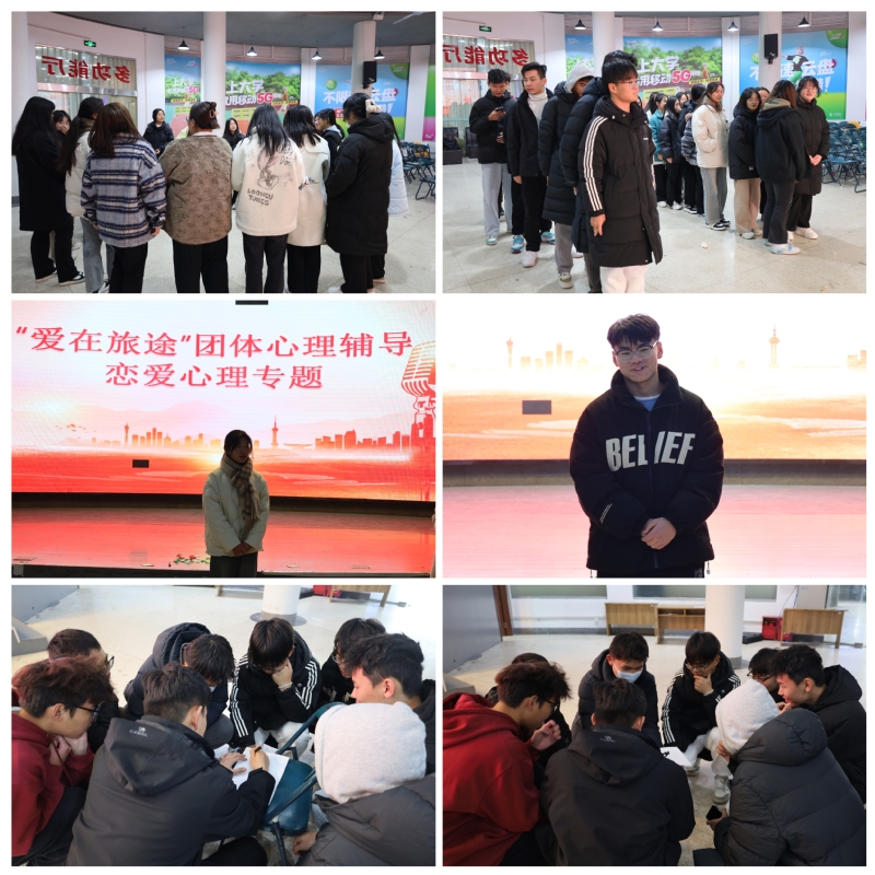 为促进大学生形成良好的恋爱关系,发展良性的依恋关系。12月4日,王润滋老师带领同学们以大学恋爱观为主题开展了心理团辅活动。活动在“爱的热身”中拉开帷幕,同学们分组破冰,很快熟悉起来。在“理想爱情观”环节中男生代表和女生代表分别讲述了作为男生和女生的爱情观,引起现场同学们的激烈讨论。活动引导同学们树立了正确的恋爱价值观,筑牢了心理防线,提高了两性差异的认识。