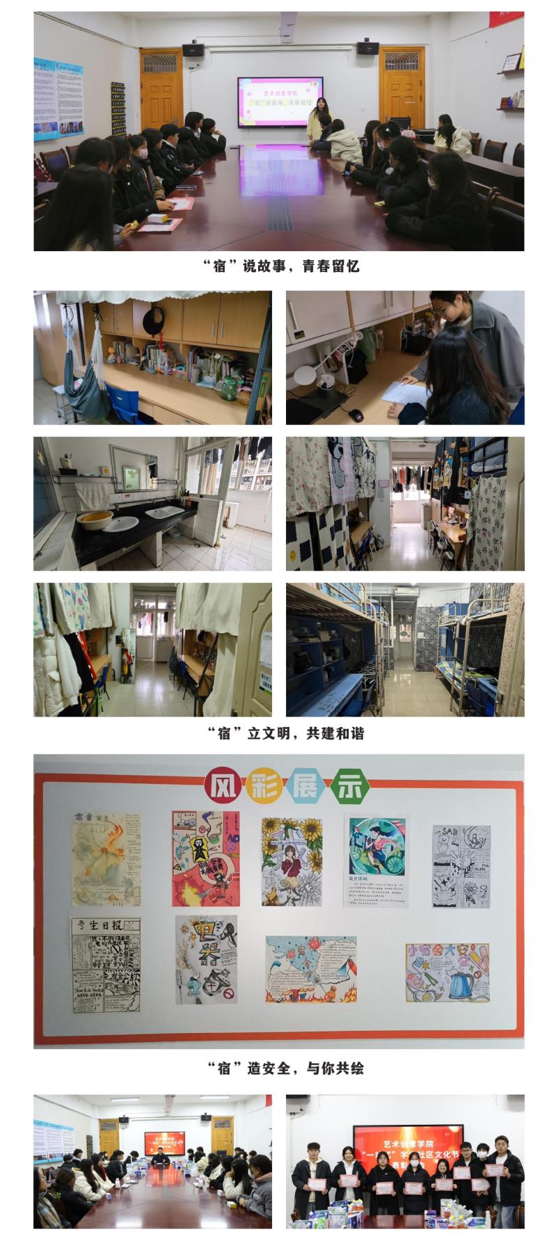 在评比活动中,同学们积极参与,认真准备,从宿舍卫生、室内装饰、文化氛围等方面进行了全面的展示和分享。根据同学们的展示和平时对宿舍的了解,艺术创意学院社区管理中心对每个宿舍进行了打分和点评。