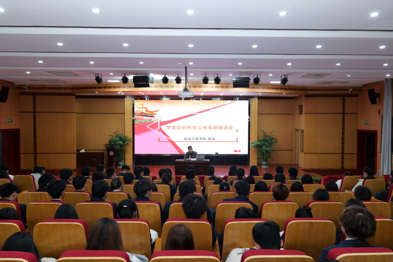 为做好学生意识形态工作,牢牢把握学生意识形态主阵地,12月1日,信息工程学院党总支副书记赵云就学生意识形态工作召开专题培训会。信息工程学院全体学生会成员及各班级骨干力量参加培训会。