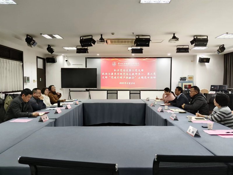 为全面贯彻落实党的二十大精神,推动形成产教融合头雁效应,12月15日下午,机关党总支第二党支部,旅游与康养学院党总支教师第一、第二党支部联合开展“党建引领产教融合”主题党日活动。旅游与康养学院党政负责人王迎春、陈纯,副书记郭媛,副院长张卫兵,产学研合作处处长褚守云、副处长张永进,机关党总支第二党支部书记胡彩霞及部分党员代表参会。活动由胡彩霞主持。