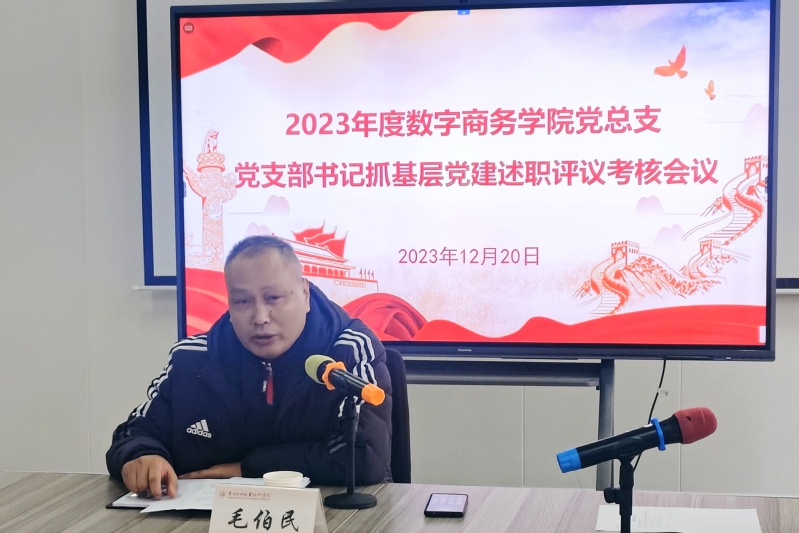 为进一步加强学院基层支部建设,落实校党委关于基层党组织书记抓党建述职评议考核工作安排,12月20日,数字商务学院党总支召开2023年度党支部书记抓基层党建工作述职评议会。会议由数字商务学院党总支副书记马军主持。校党委副书记毛伯民出席会议并作点评。