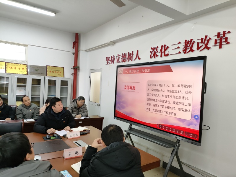 学生党支部书记郑新涛从基层党建工作情况、存在问题、下一步的工作打算等方面详细汇报了学生党支部在本年度开展的各项工作。学生党支部以学校党建工作要求为统领,坚持以“党建引领专业成才”的工作主线,立足“追光逐梦”计划,深入贯彻落实“七个有力”的建设要求和任务,充分发挥党支部教育党员、管理党员、监督党员以及组织师生、凝聚师生、服务师生的重要作用,培养了一批“政治强、素质高、专业精”的模范党员和优秀积极分子,形成了一个政治思想坚定、工作作风严谨、战斗堡垒作用突出的党支部。