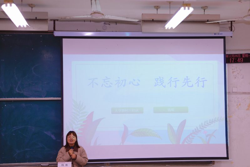 为提升学生干部的综合素质,使他们对志愿服务和为民办实事产生更深层次的理解,12月25日,艺术创意学院邀请大学新村三社区党委书记、江苏省最美社工钱维开展“不忘初心,践行先行”素养公开课。