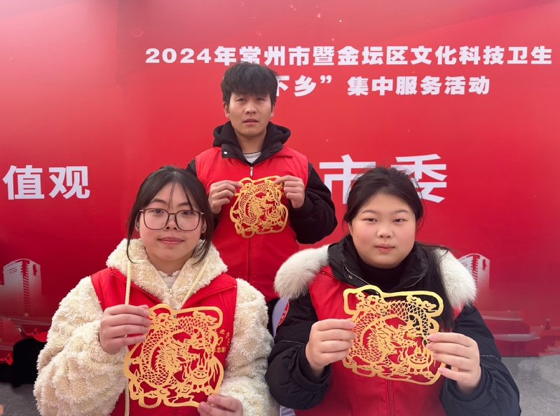 1月10日下午,2024年常州市暨金坛区文化科技卫生“三下乡”集中服务活动在指前镇东浦村举行。市领导蒋鹏举、赵正斌参加活动。我校志愿者全程参与本次活动,为东浦村村民提供各项便民服务。