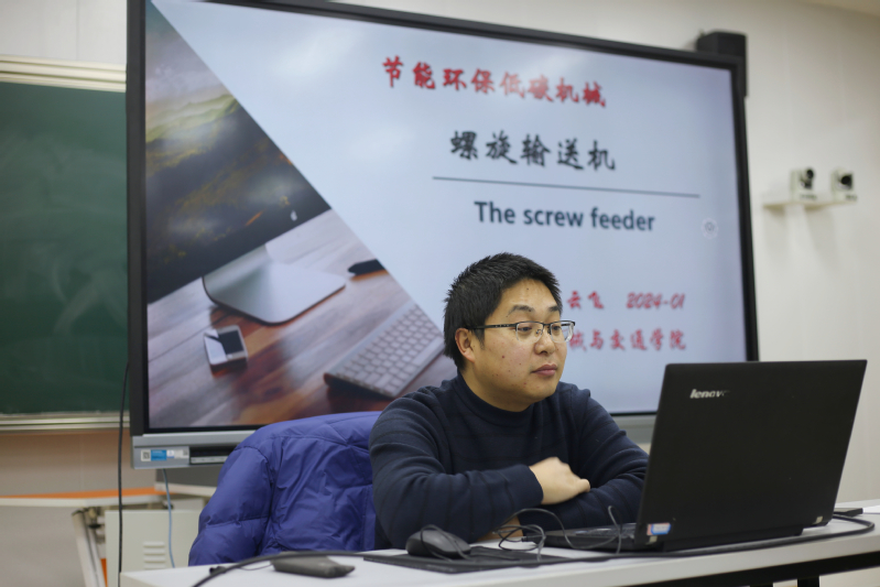 同学们围绕“节能环保机械-螺旋输送机”结构设计及应用途径进行了热烈讨论,并提出疑问,石云飞博士进行一一解答,并提供了生动详细的实例。同学们对所学专业有了更深入的了解,并对于如何进一步提高螺旋机工作效率、减少能源损耗提出自己的见解。