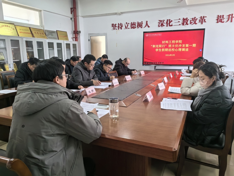 新学期伊始,为进一步提高班主任的安全防范意识和班级管理能力,切实做好学生假期返校安全保障工作,帮助学生尽快做好新学期心理调适,2月27日,材料工程学院开展“和光同行”第十四期班主任主题沙龙。学院党总支副书记潘逸、全体辅导员以及全体班主任参加会议,会议由潘逸主持。