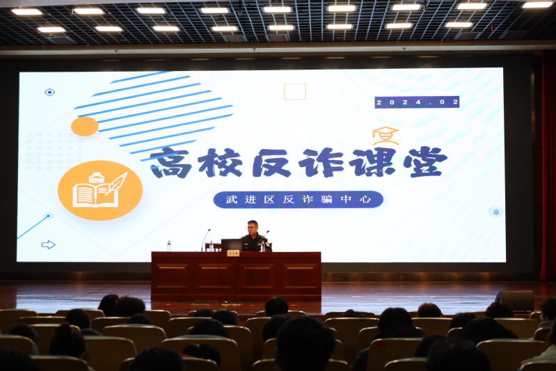 为做好大学生安全法治教育,切实提高大学生安全防范意识和自我保护能力,减少诈骗案件的发生,2月29日晚,科教城派出所民警肖警官走进旅游与康养学院、艺术创意学院,为2023级学生带来了一场极具警示和教育意义的开学安全反诈第一课。