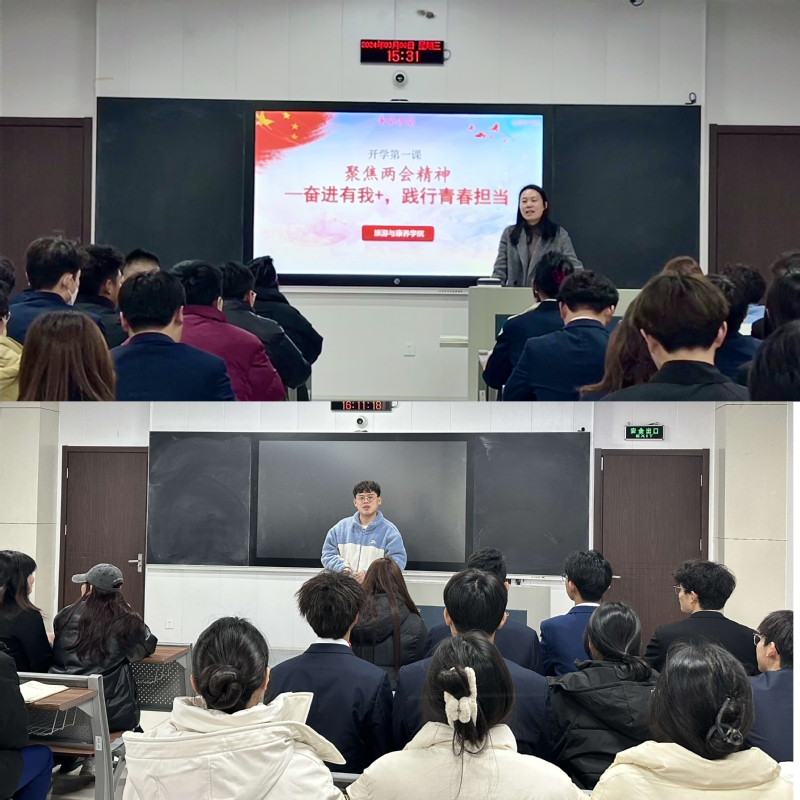 讲好“求是”讲堂暨开学思政第一课。正值全国两会召开之际,学院党总支副书记郭媛结合政府工作报告,以《聚焦两会精神——奋进有我+,践行青春担当》为主题,给学生代表上了一堂深刻的思政课。她从坚定理想信念、做好生涯规划、全面提升素质等方面阐明了如何做一名有理想、敢担当、能吃苦、肯奋斗的新时代青年。