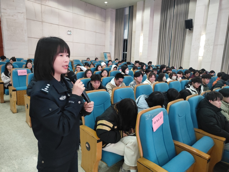 讲座中,陈警官通报了近期科教城高校的诈骗警情,并从冒充电商物流客服类诈骗、虚假购物类诈骗、买卖游戏账号诈骗、冒充熟人类诈骗、兼职刷单类诈骗等五类常见的诈骗类型,针对性进行剖析,并传授识别、防范诈骗的方法和技巧,提高了同学们的反诈安全意识。活动现场,陈警官通过有奖互动问答的方式,活跃了气氛,增强了广大师生识骗、防骗、拒骗意识,有效筑牢了校园安全防线。