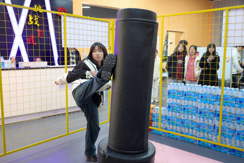 健身房中,段教练为学生阐述了女性养生与健身的联系,让学生放松肩颈,体验跑步机、健身车、杠铃、拳击……展现美的无限力量。学生们纷纷行动起来,在健身的浪潮中不断挥洒汗水。