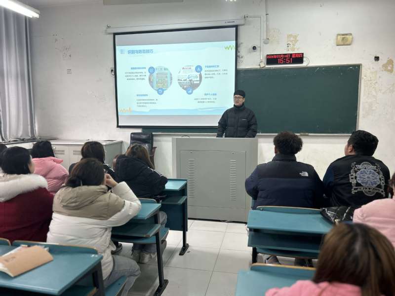 王帅面向宿舍长开展反诈知识讲座。他结合实际案例,深入浅出地讲解了网络诈骗的常见手段、特点和防范措施。通过真实的案例剖析,让学生们对网络诈骗有了更加直观和深刻的认识。王帅还特别强调了个人信息的保护、交易安全的注意事项以及遇到可疑情况时应该如何应对等方面的内容,呼吁学生们要时刻保持警惕,增强自我保护意识,避免成为网络诈骗的受害者。他还提出了一系列与反诈相关的问题,学生们积极抢答,现场气氛热烈而紧张,大家在轻松愉快的氛围中掌握了反诈知识。