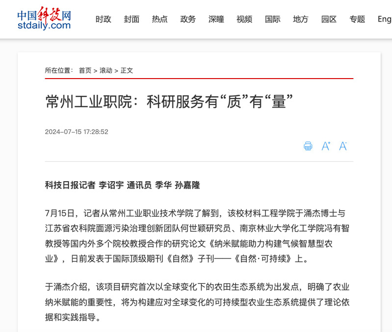 中国科技网:常州工业职院:科研服务有“质”有“量”