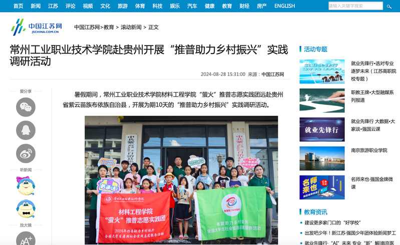 中国江苏网:常州工业职业技术学院赴贵州开展“推普助力乡村振兴”实践调研活动