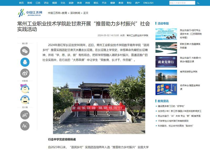 中国江苏网:常州工业职业技术学院赴甘肃开展“推普助力乡村振兴”社会实践活动