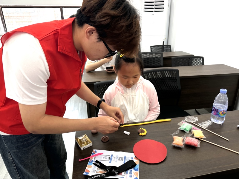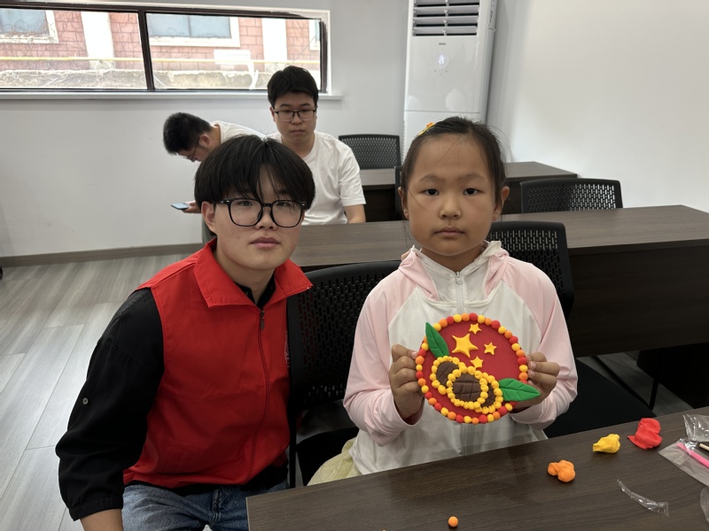实践团精心策划了一堂别开生面的“红色手工课”。活动现场,成员们以彩泥为媒、以巧手传情,指导孩子们创作主题为“赤阳流焰”的红色手工艺品。孩子们在成员们的悉心指导下,将彩纸折成熠熠生辉的红星与猎猎飘扬的红旗,以剪刀为笔创作出饱含深情的红色剪纸作品。这场洋溢着艺术芬芳的红色教育,在锻炼孩子们动手能力与创造力的同时,更让他们在艺术创作中感悟红色文化的深厚底蕴,让革命精神如春风化雨般浸润童心。