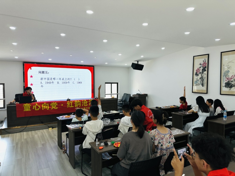 为深入推进红色文化精神教育,实践团还精心设计了“红色趣味闯关”主题活动,将红色文化与革命传统巧妙融入互动游戏环节。活动特别设置了“党史知识趣问答”关卡,让孩子们在妙趣横生的答题过程中感悟党的光辉历程。活动现场,小朋友们争相竞答的热情高涨,在欢声笑语中实现了红色基因的生动传承。