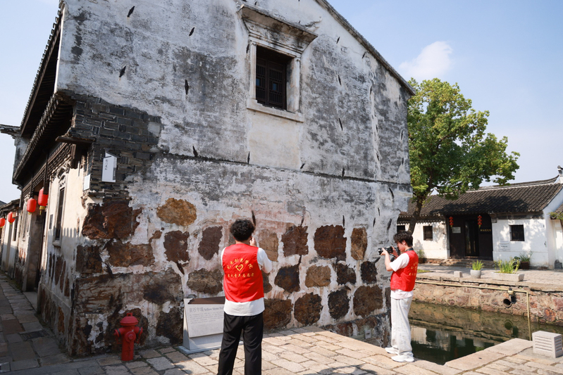 不同于传统意义上对古建筑的档案式留存,“古镇新声”团队的实践带着强烈的“人本性”——他们不仅用4K镜头捕捉焦溪古镇“黄石半墙”的斑驳肌理,更蹲点记录工匠们修复墙体时的一凿一砌,让建筑保护的过程成为可触摸的文化记忆;在惠山古镇,队员们执画笔勾勒祠堂群的飞檐斗拱,右手举相机跟拍泥人非遗传承人揉捏、彩绘的指尖功夫,与老手艺人探讨“泥人如何走进年轻人生活”的创新路径;而在沙沟古镇的水巷旁,他们镜头下的渔民撒网、主妇制作“沙沟鱼圆”的烟火气,恰是水乡生活最生动的注脚。