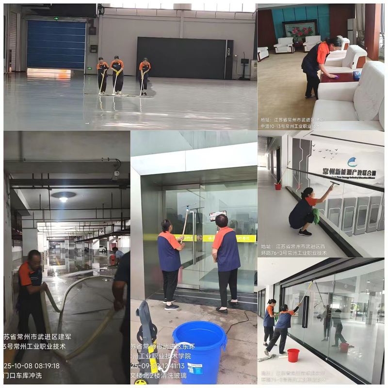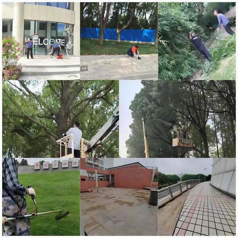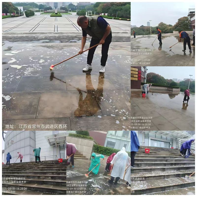 环境服务持续升级,物业服务团队聚焦细节提质,不仅完成校园公共区域日常清扫,更对图文楼及敬业楼地下车库、知行楼大台阶、图文楼北侧台阶、文体中心走廊及台阶等积污区域开展深度清洁,对校园道板路面的杂草进行全面清理,用高压水枪冲洗地面油污,用专用清洁剂擦拭公共设施和门窗玻璃;同时对走廊、楼梯扶手等高频接触部位进行深度消杀,为师生健康筑牢安全防线。