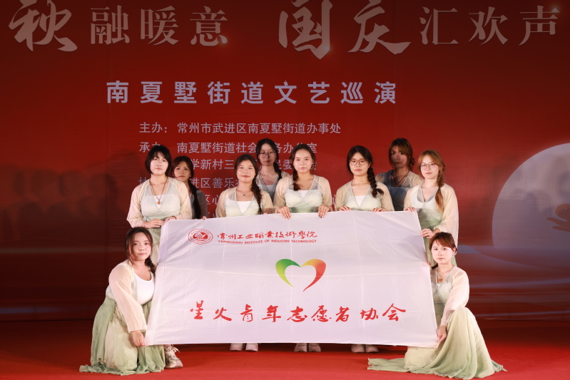 以服务传递爱国温度。国庆节前夕,艺术创意学院组织大学生志愿者,携手共建单位大学新村三社区共同举办“中秋融暖意,国庆汇欢声”南夏墅街道文艺巡演。舞台上,志愿者们舞姿优美、神情专注,将青春活力与爱国情怀融入每一个动作,赢得了社区居民的一致好评。