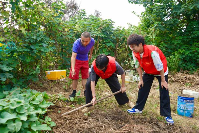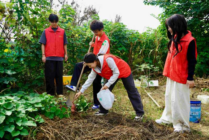 同学们走进农田,在农民伯伯和奶奶的指导下,亲手体验挖山芋、采摘黄瓜与辣椒等农事劳作。从理论到实践,从认知到体验,同学们在躬身耕作中真切体会到“一粥一饭,当思来之不易”的深刻含义。
