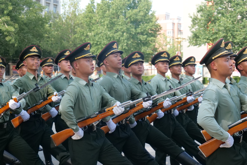 730个日夜的坚守,四十余场任务的“零失误”,是他交出的军旅答卷。他曾立长安街旁,看外国政要来访,礼炮声响彻云霄的瞬间,才懂“仪仗兵”三字是国家形象的“移动名片”;他曾赴人民英雄纪念碑前,捧花篮缓步前行,低头凝视碑文的刹那,脚步比往常更沉,满心都是对先烈的敬畏;他更难忘2024年9月1日的晨光,作为仪仗队员将五星红旗冉冉升起时,那抹鲜红映着朝阳,“那一刻,所有的苦都成了值得。”2024年寒冬,他作为南京大屠杀死难者国家公祭仪式的礼兵,肩负起抬花圈敬献的庄严使命。每一次训练,他都要托举着数百斤重的花篮,在凛冽寒风中持续行走一个多小时。尽管手指被冻得通红,但汗水仍浸透了贴身衣衫;手腕因长时间负重而肿胀不堪,每一次弯曲都伴随着钻心的刺痛。然而,他始终以近乎苛刻的标准要求自己,因为在他心中,这不仅是一份个人荣誉,更是对先烈们为祖国强盛抛头颅、洒热血的至高致敬——这份沉甸甸的责任,早已化作他血脉中流淌的信仰。