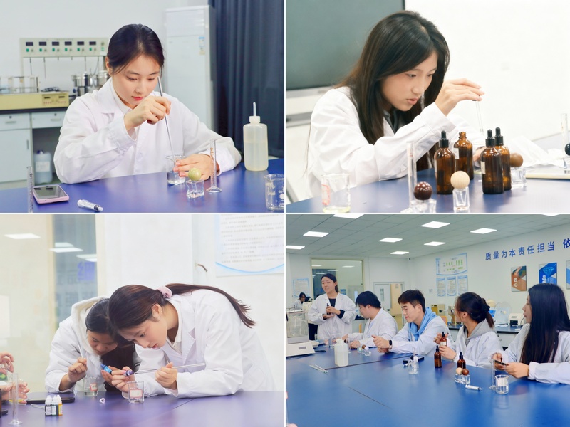 从实验室里的精油精准配比,到活动现场的创意作品呈现;从跨专业的协作探索,到校园心理疗愈的实际应用,本次活动不仅充分展现了当代大学生的创新活力与实践能力,更以色彩为媒、以香气为桥,为校园注入了温暖治愈的心理能量。参与同学纷纷表示,“宁心蓝”香水在适应周带来了安心感,“暖阳橙”香水则像“小太阳”一样驱散了负面情绪。